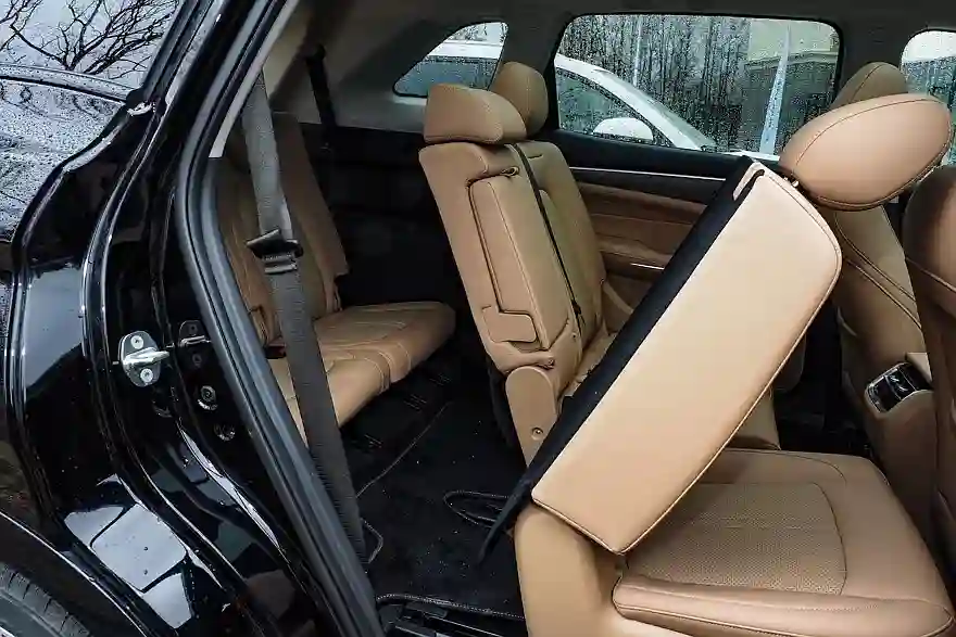 Маркетологи EVOLUTE не зря придумали такое название – i‑SPACE, ведь Space в переводе с английского означает «объем». Автомобиль действительно получился весьма объемистым: и «сам за собой» садишься без каких-либо проблем, и багажник позволяет вместить массу всяческой поклажи (его объем «под крышу» в пятиместной конфигурации составляет 934 литра, а со сложенным вторым рядом – 2125 литров), и даже с разложенными сиденьями третьего ряда сзади остается место для пары солидных спортивных сумок. При этом сиденья третьего ряда, естественно, не отличаются суперкомфортом – и подушки, и спинки плоские, но два взрослых человека среднего роста там вполне спокойно перенесут не самую продолжительную поездку, а уж дети будут чувствовать себя просто отлично. А еще мне понравилось, как организован вход на третий ряд: просто тянешь за расположенную на спинке дивана второго ряда ручку, спинка части дивана отклоняется, а подушка отъезжает вперед. Все, прошу экипаж занять места на галерке…