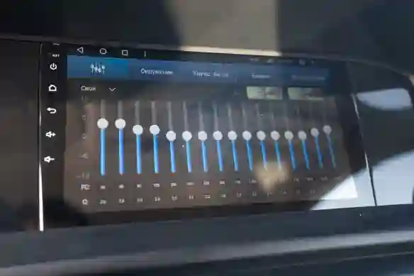 Вот тут меня смогли удивить так удивить. Количество полос в современном эквалайзере современного же автомобиля – три. Ну максимум четыре, если отдельно управляется сабвуфер. В EVOLUTE их оказалось… целых шестнадцать! Рай для звукорежиссера, не иначе.