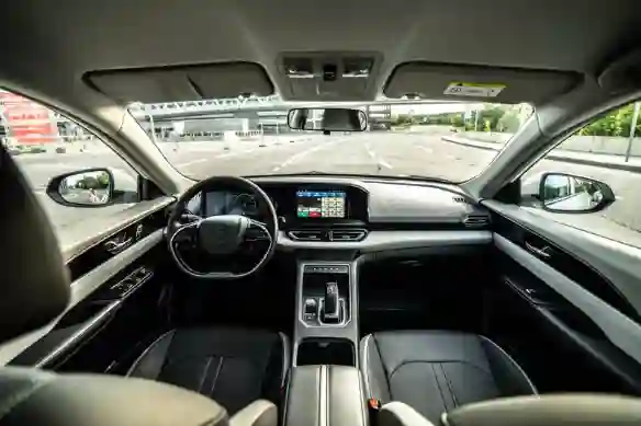 Интерьер в EVOLUTE строгий и деловой: линии четкие, все по делу, ничего лишнего. Оторваться дизайнеру дали в одной детали: визуальная дуга, проходящая через передние двери, соединенная на торпедо под лобовым стеклом. Но она даже подчеркивает аскетичность дизайна. Впрочем, на кожаные сиденья денег хватило, опять же.