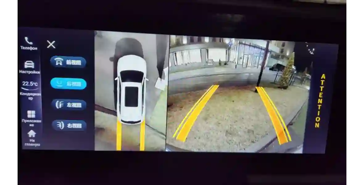 Но логика управления меню в целом проста, слева у вас есть панель для быстрого доступа, а самих настроек не так уж и много. Графика и качество картинки тут простенькие, что особенно заметно по главному экрану. Быстродействие тоже не блещет — при нажатии на виртуальные кнопки есть небольшая задержка. Картинка с камер кругового обзора по современным меркам простенькая, особенно это заметно вечером. Полноценного режима 3D нет, только вид сверху.